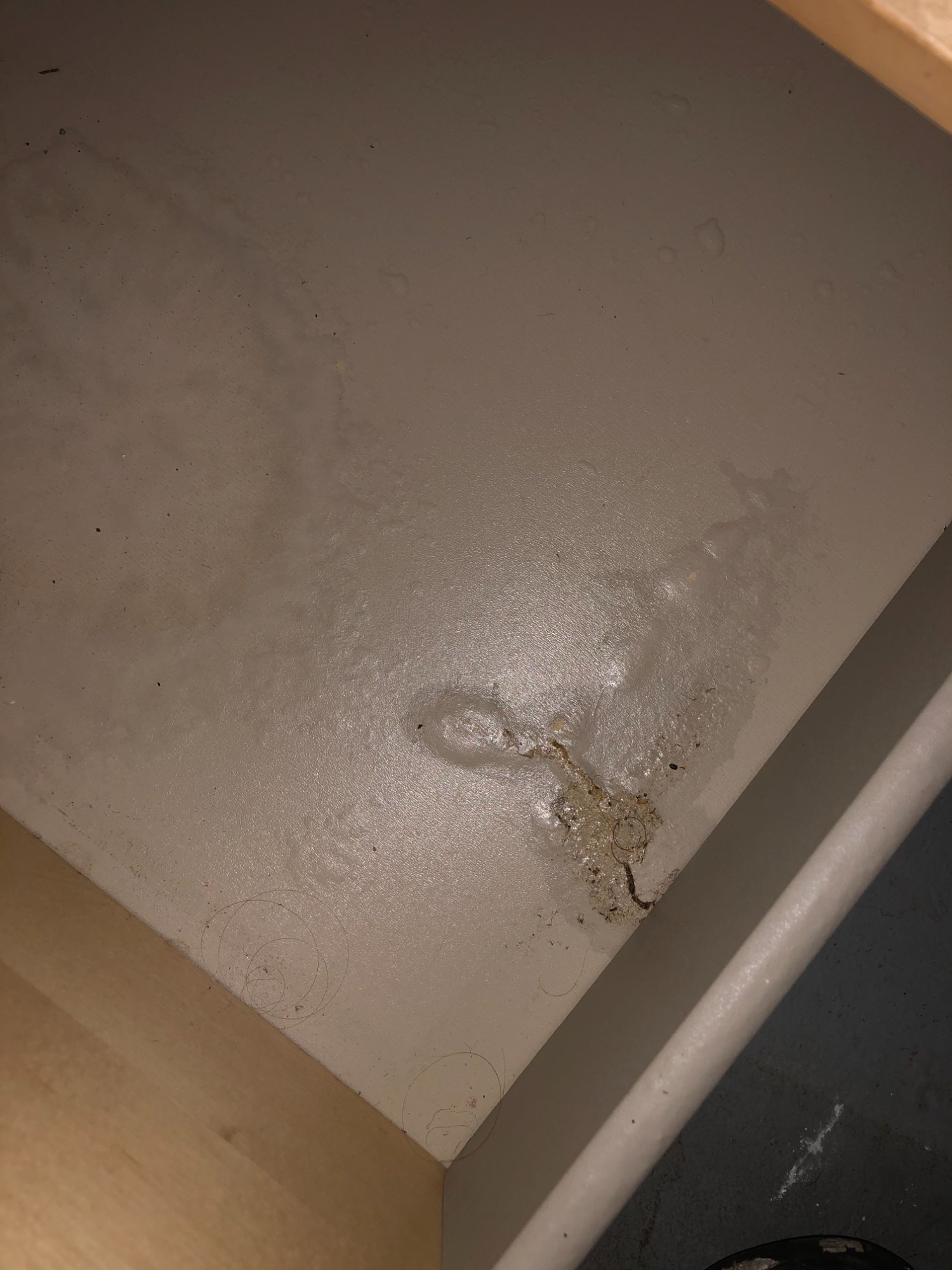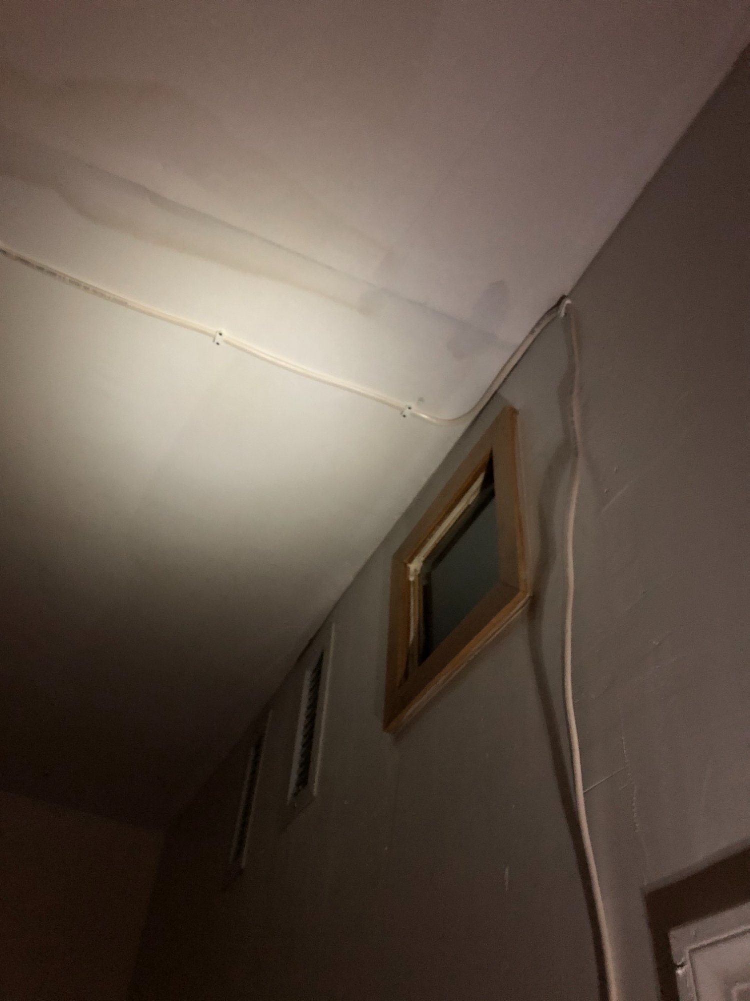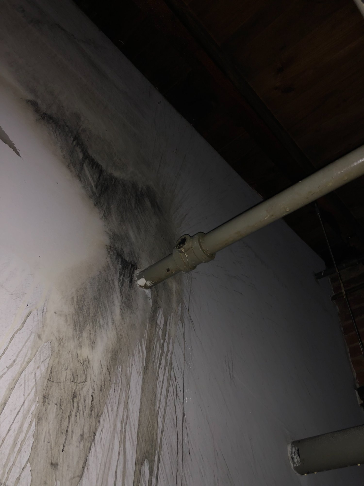 | 002 | Ceiling/wall junction showing pipe fitting with extensive mold growth pattern and water staining indicating ongoing water intrusion source | View | FLOOD_97GreenStG21_002_CeilingPipeFitting_MoldPattern.jpeg | IMG_4162.jpeg | October 2019 (Attorney Sherman) | GOOD | HIGH |