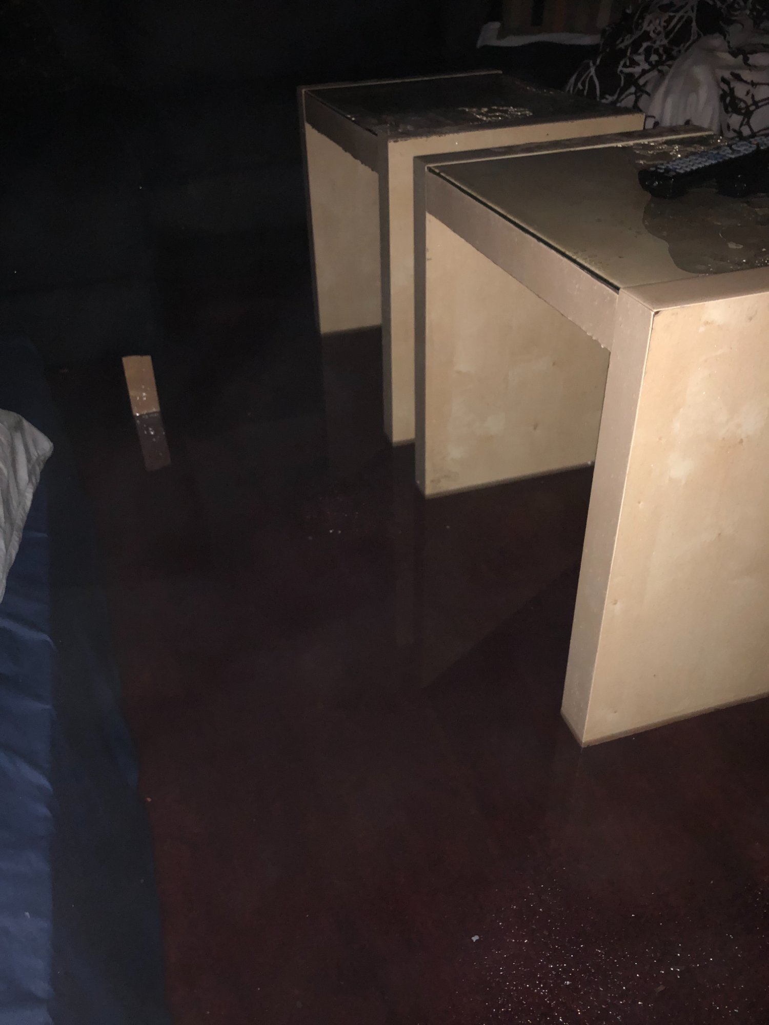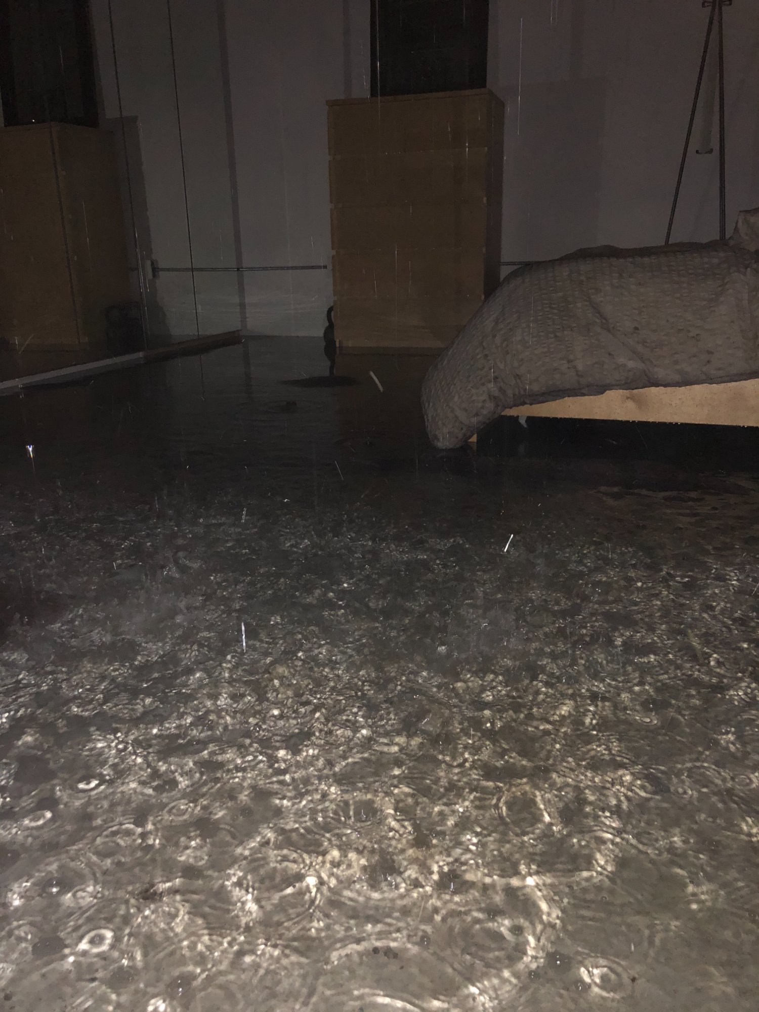 | 004 | Wide bedroom view showing active water with visible ripple patterns on surface indicating ongoing water intrusion | View | FLOOD_97GreenStG21_004_BedroomOverview_ActiveFlooding.jpeg | IMG_4168.jpeg | October 2019 (Attorney Sherman) | GOOD | HIGH |