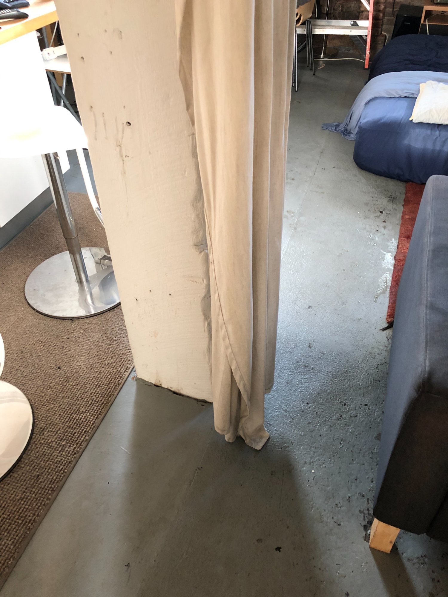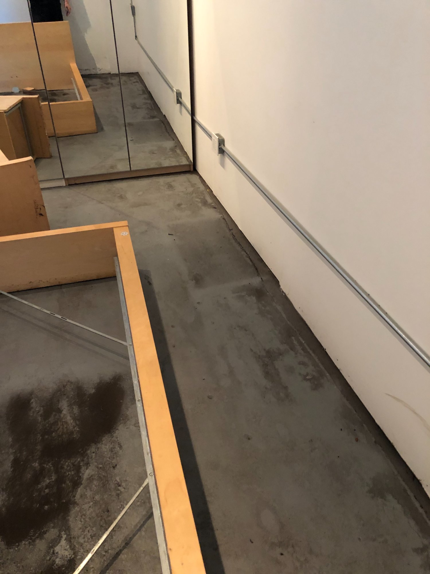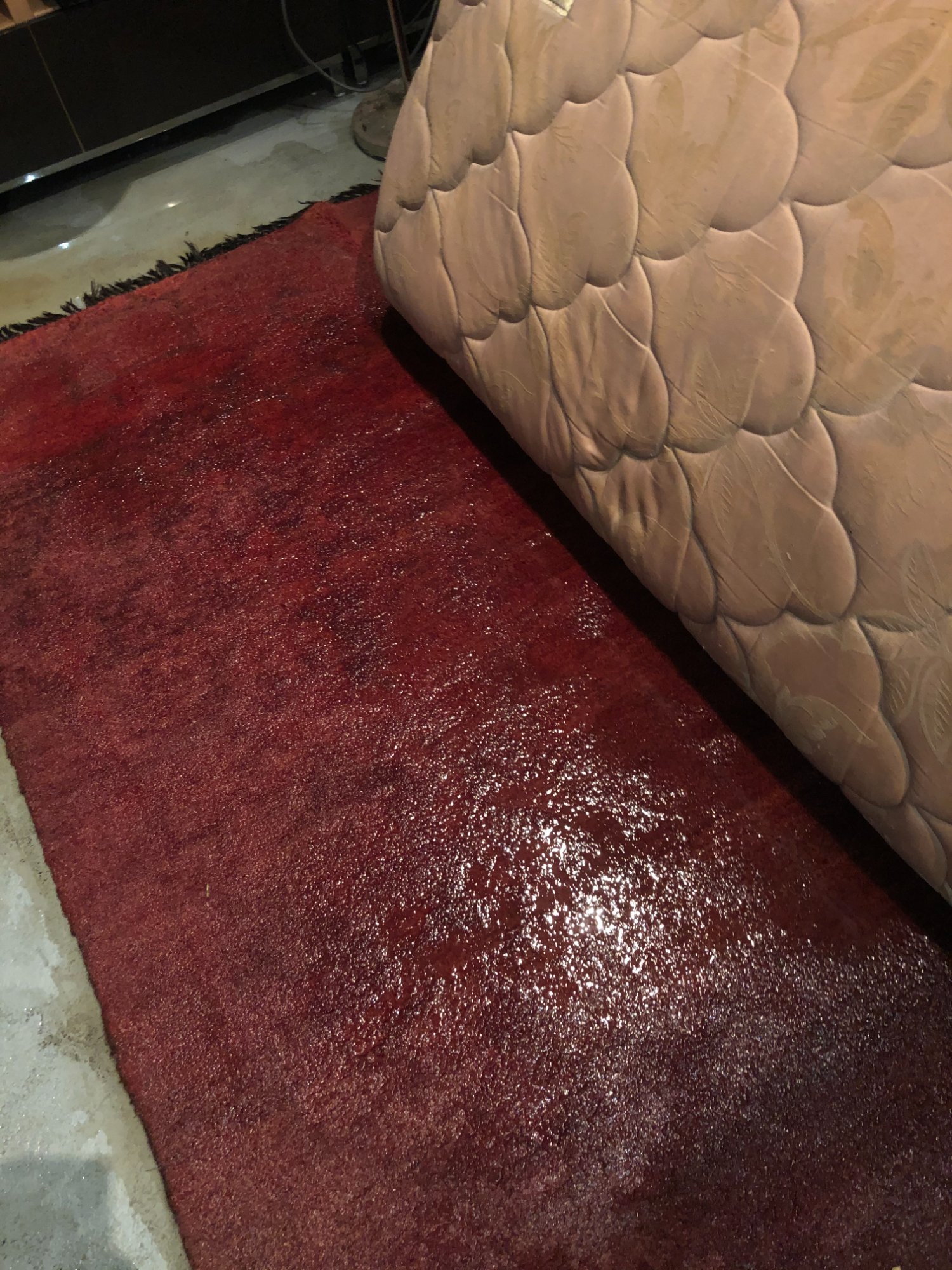 | 027 | Standing water on concrete floor with window light reflection; under TV console area; barstool base visible in water | View | FLOOD_97GreenStG21_027_Floor_StandingWater_WindowReflection.jpeg | IMG_4197.jpeg | October 2019 (Attorney Sherman) | GOOD | HIGH |