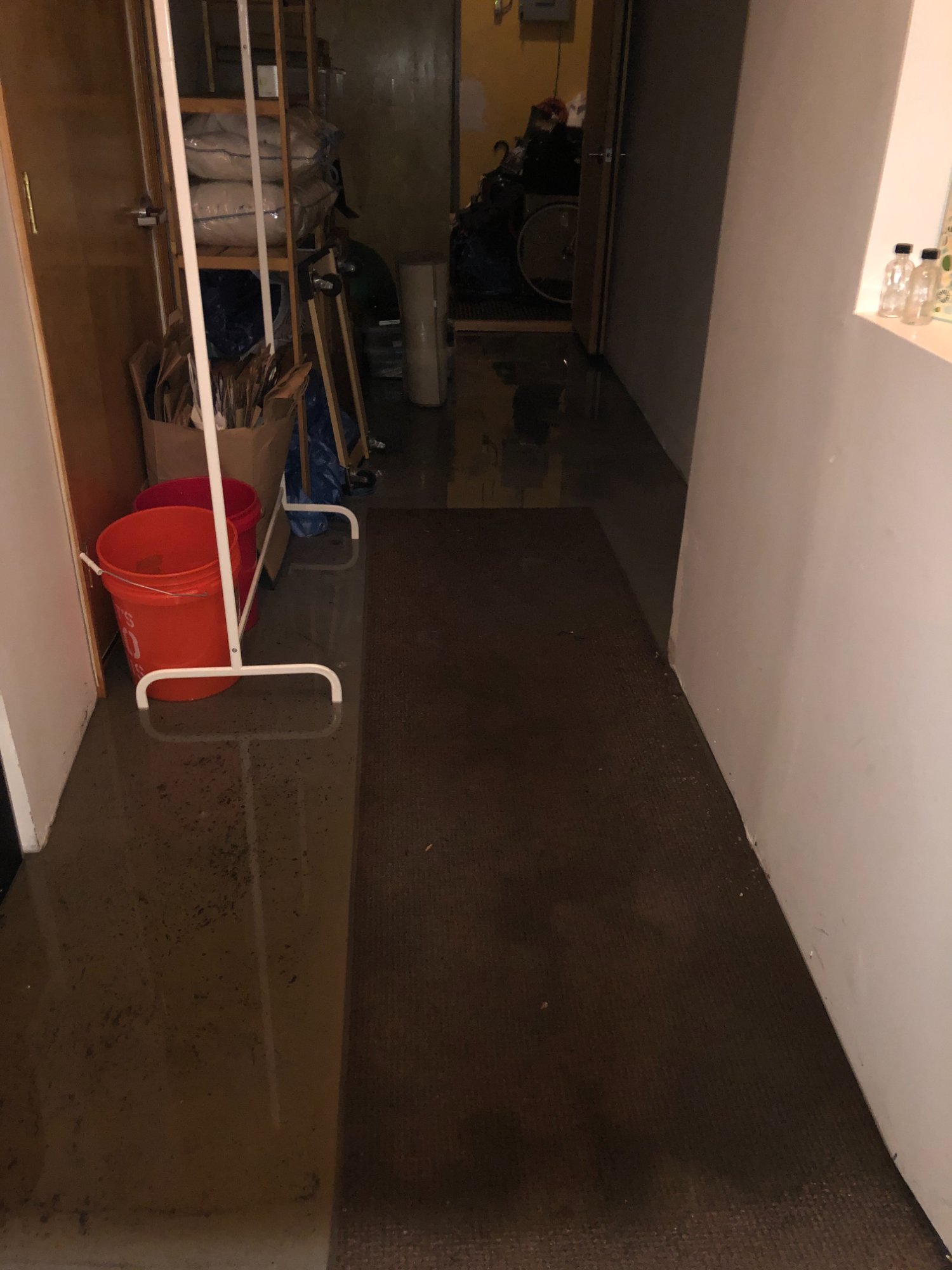 | 010 | Flooded hallway with storage shelving and salvage buckets documenting unit-wide flooding | View | FLOOD_97GreenStG21_010_Hallway_FloodedCorridor.jpeg | IMG_4176.jpeg | October 2019 (Attorney Sherman) | GOOD | HIGH |