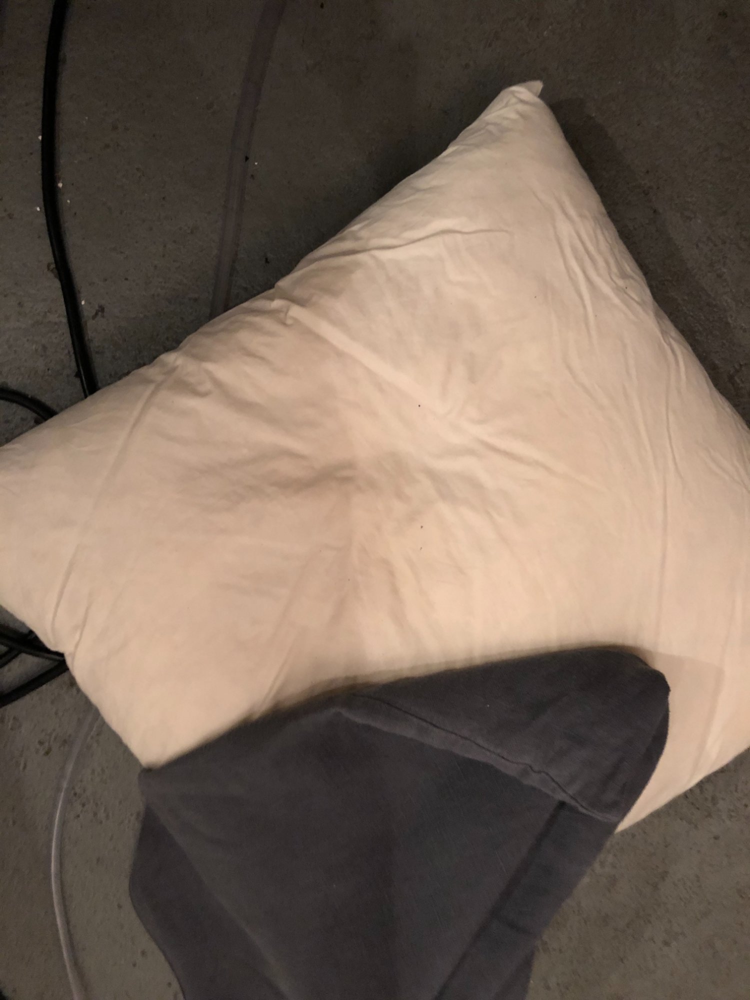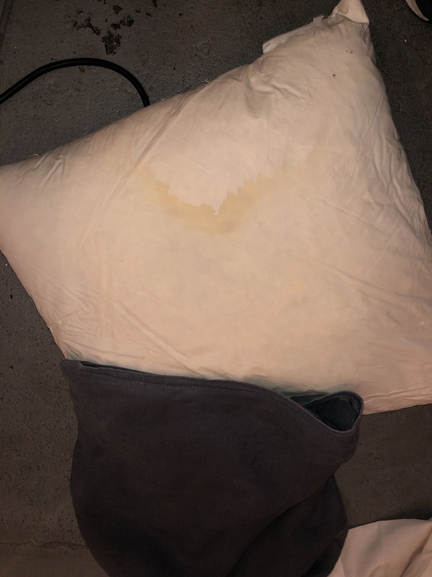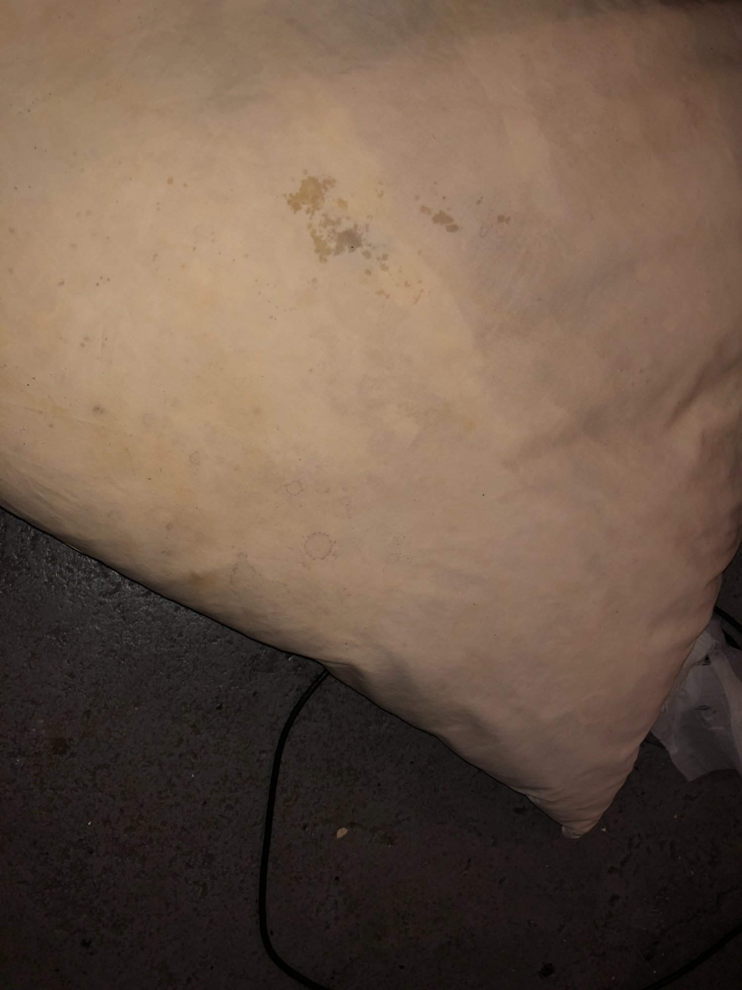 | 022 | Gray sectional couch close-up with decorative pillow; white debris/particles visible on fabric; burgundy rug beneath | View | FLOOD_97GreenStG21_022_Sectional_CloseUp_FabricDebris.jpeg | IMG_4192.jpeg | October 2019 (Attorney Sherman) | GOOD | MEDIUM |