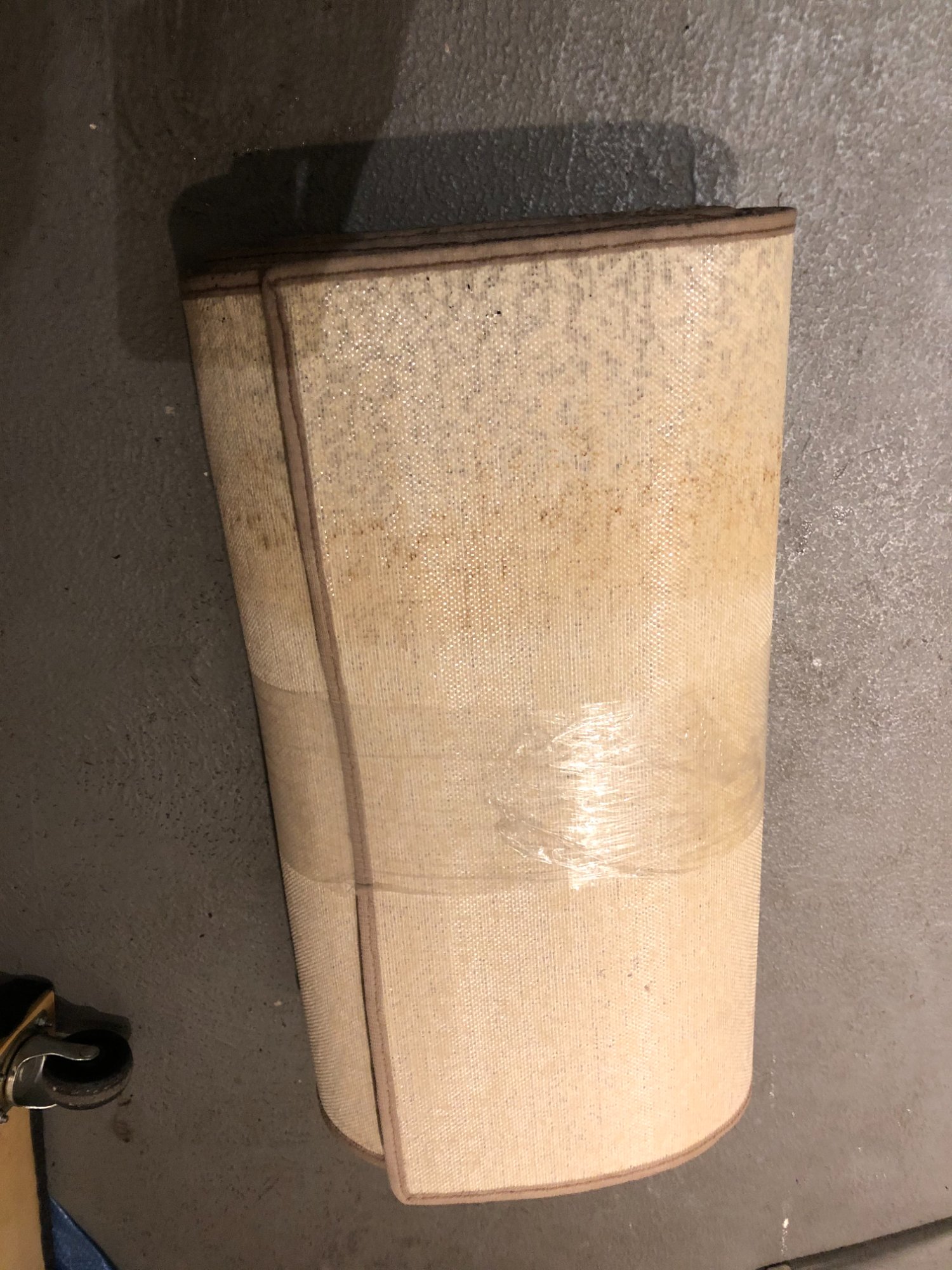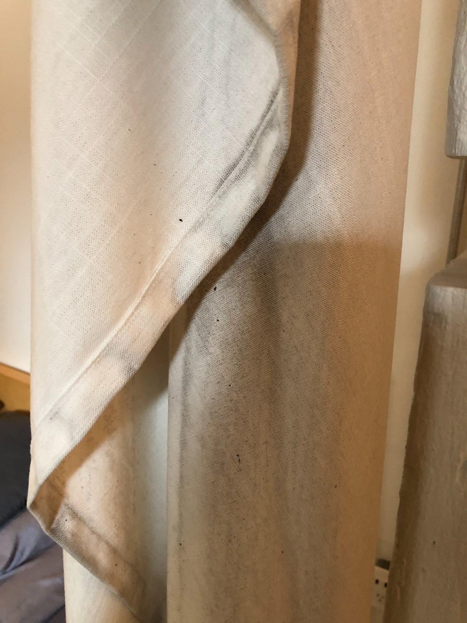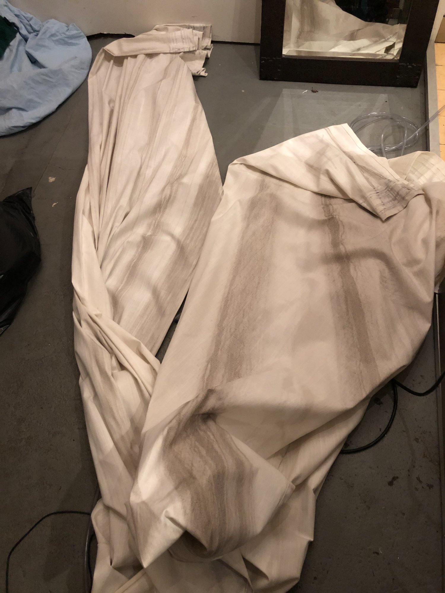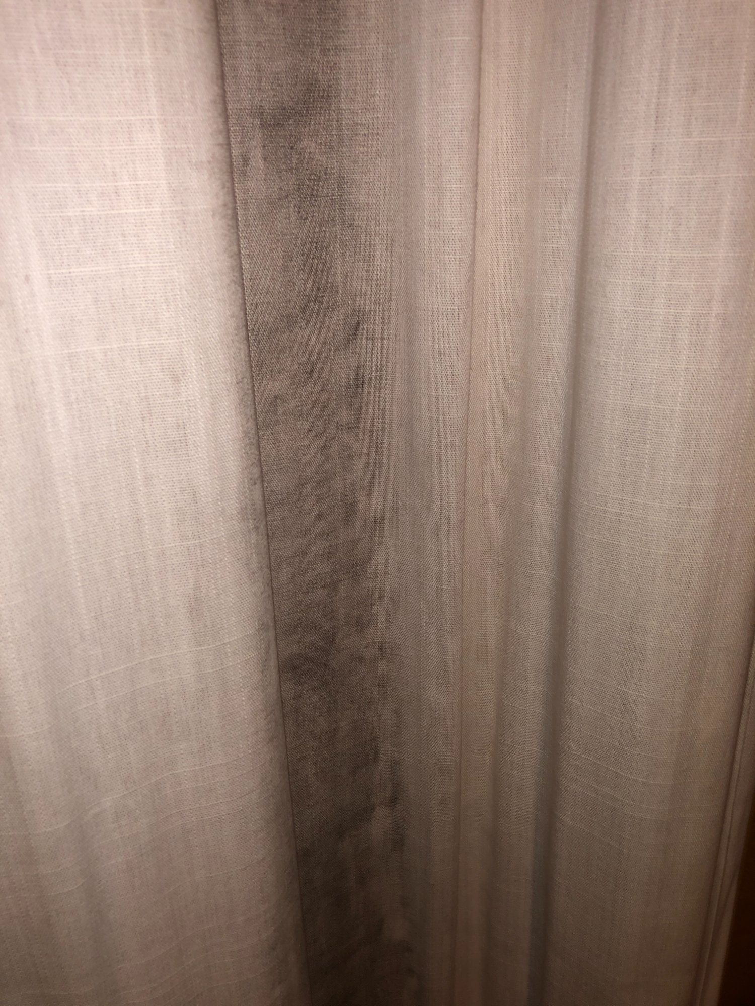| 033 | Close-up of gray sectional sofa cushion bottom edge showing clear water tide line; dark staining visible along fabric where water reached; red rug visible below | View | FLOOD_97GreenStG21_033_Sectional_CushionEdge_WaterLine.jpeg | IMG_4203.jpeg | October 2019 (Attorney Sherman) | GOOD | HIGH |