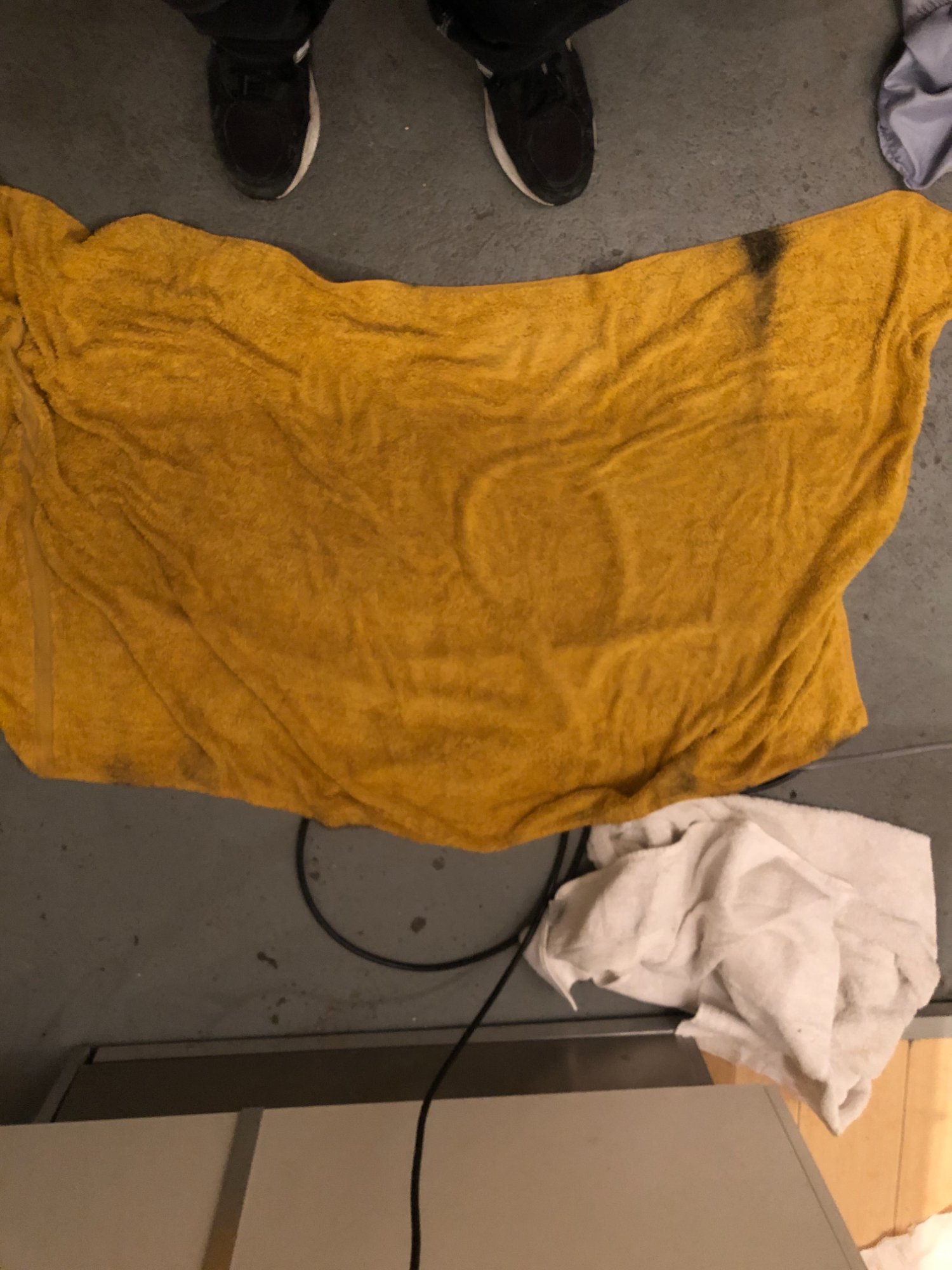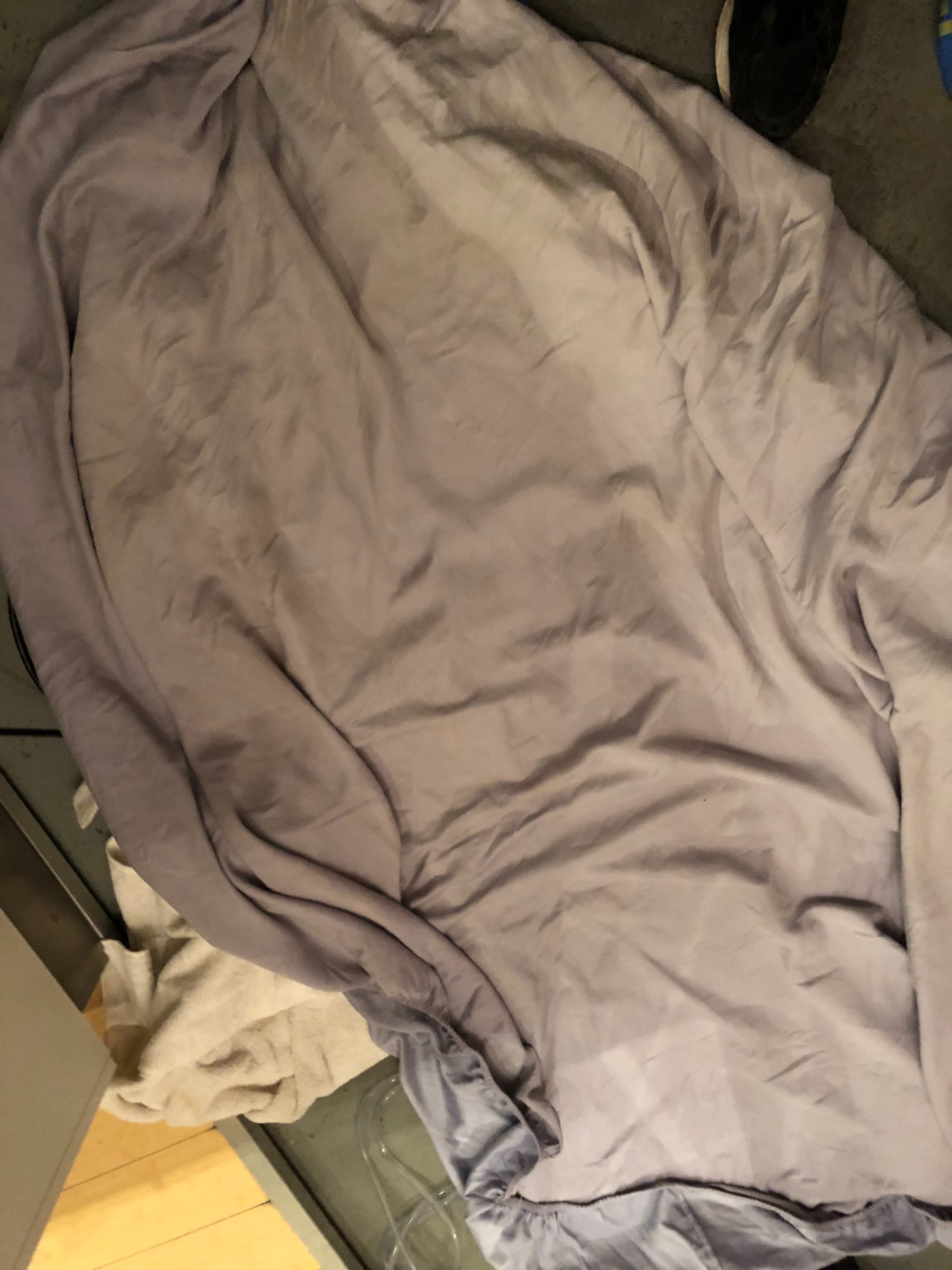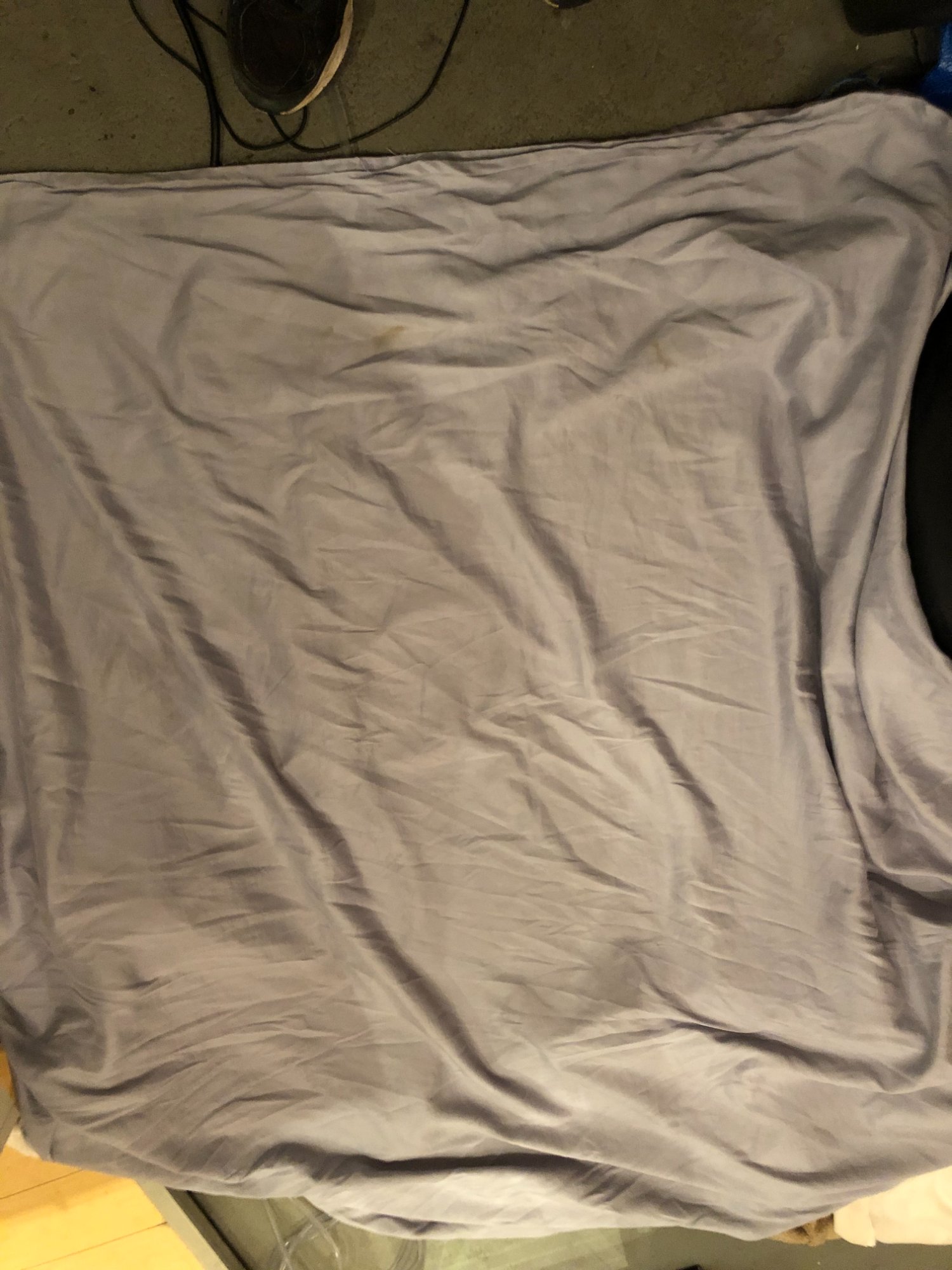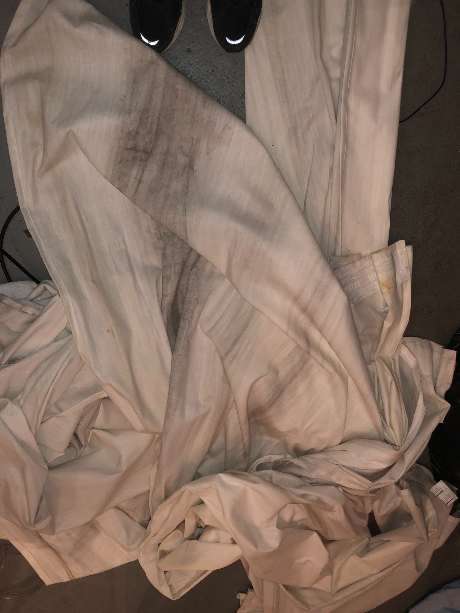 | 033 | Close-up of gray sectional sofa cushion bottom edge showing clear water tide line; dark staining visible along fabric where water reached; red rug visible below | View | FLOOD_97GreenStG21_033_Sectional_CushionEdge_WaterLine.jpeg | IMG_4203.jpeg | October 2019 (Attorney Sherman) | GOOD | HIGH |