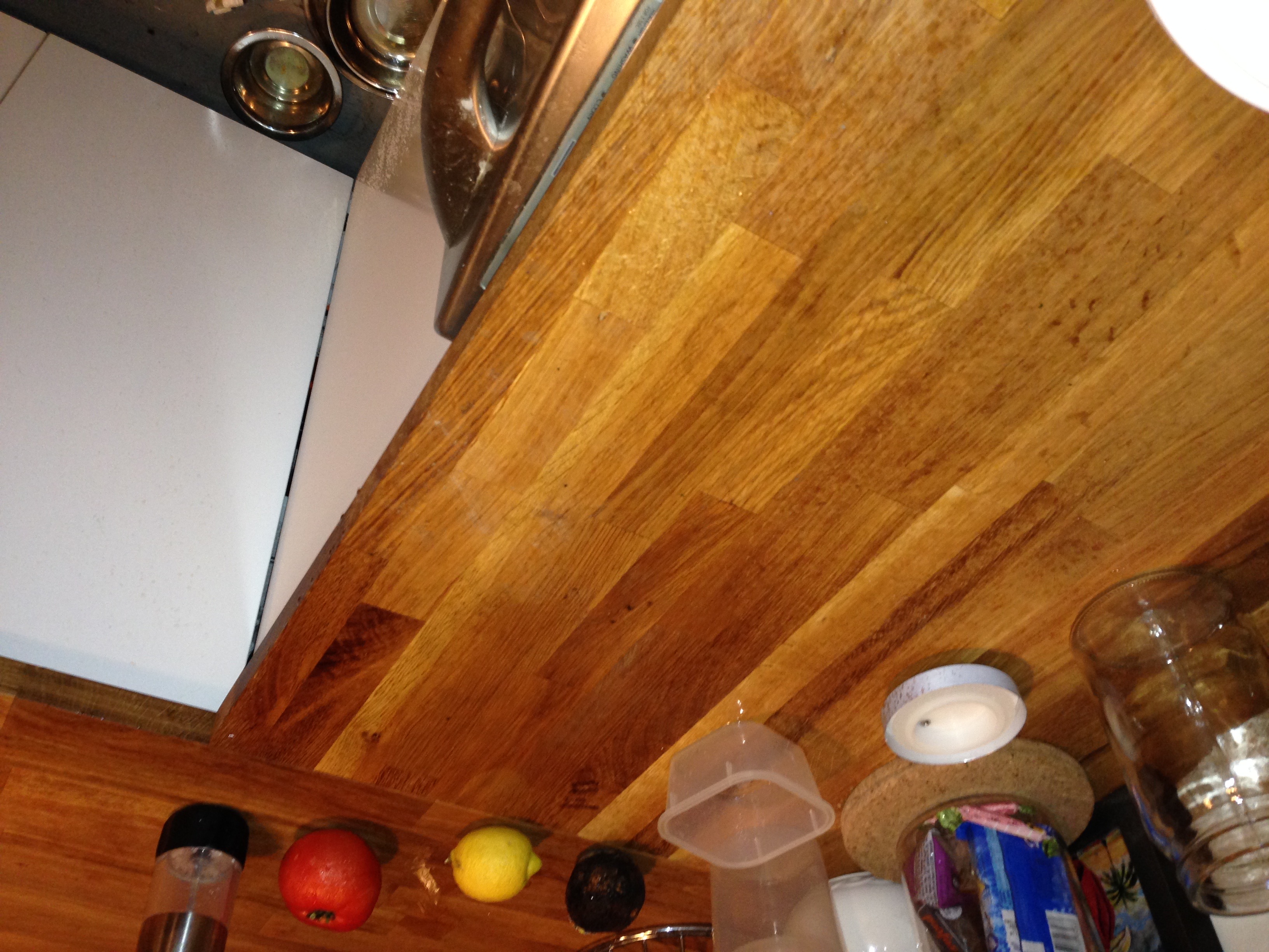 | P-01 | Kitchen butcher-block counter with visible water/moisture sheen; plastic container with water droplets; stove visible at bottom | View | WT-116_2015-05-31_Photo_01_IMG_3548.jpeg | IMG_3548.JPG | 2015-05-31 17:56:46 |