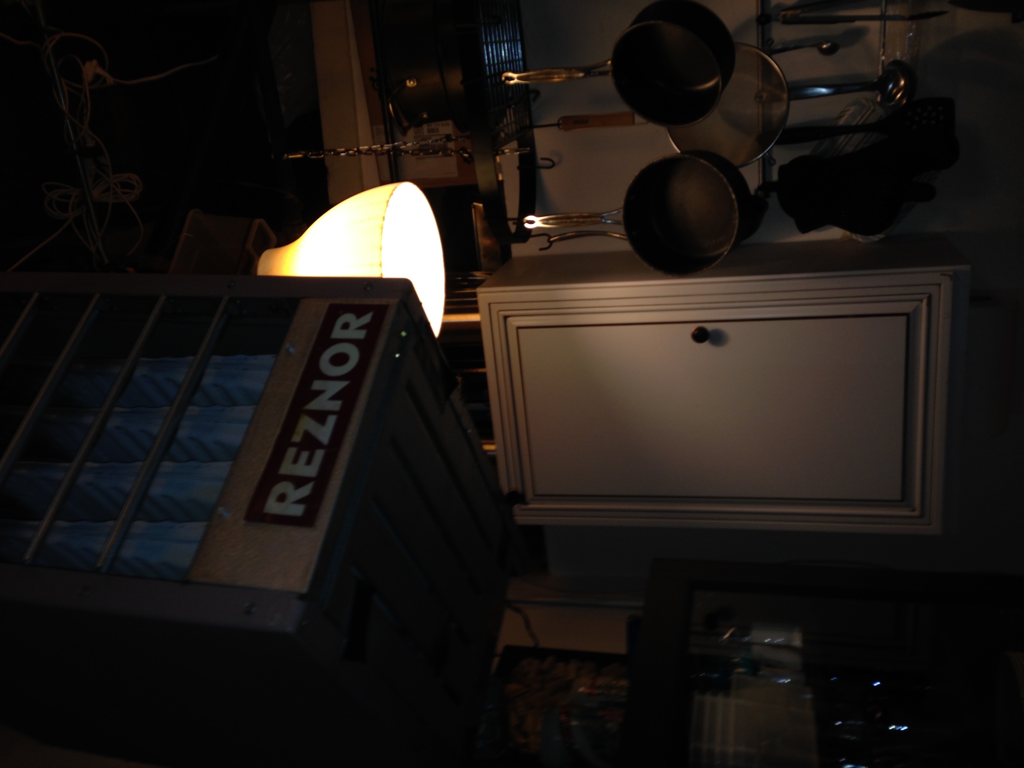 | P-03 | REZNOR heater unit mounted on wall/ceiling — documents the heater system referenced as water intrusion pathway; kitchen visible below | View | WT-116_2015-05-31_Photo_03_IMG_3550.jpeg | IMG_3550.JPG | 2015-05-31 17:56:56 |