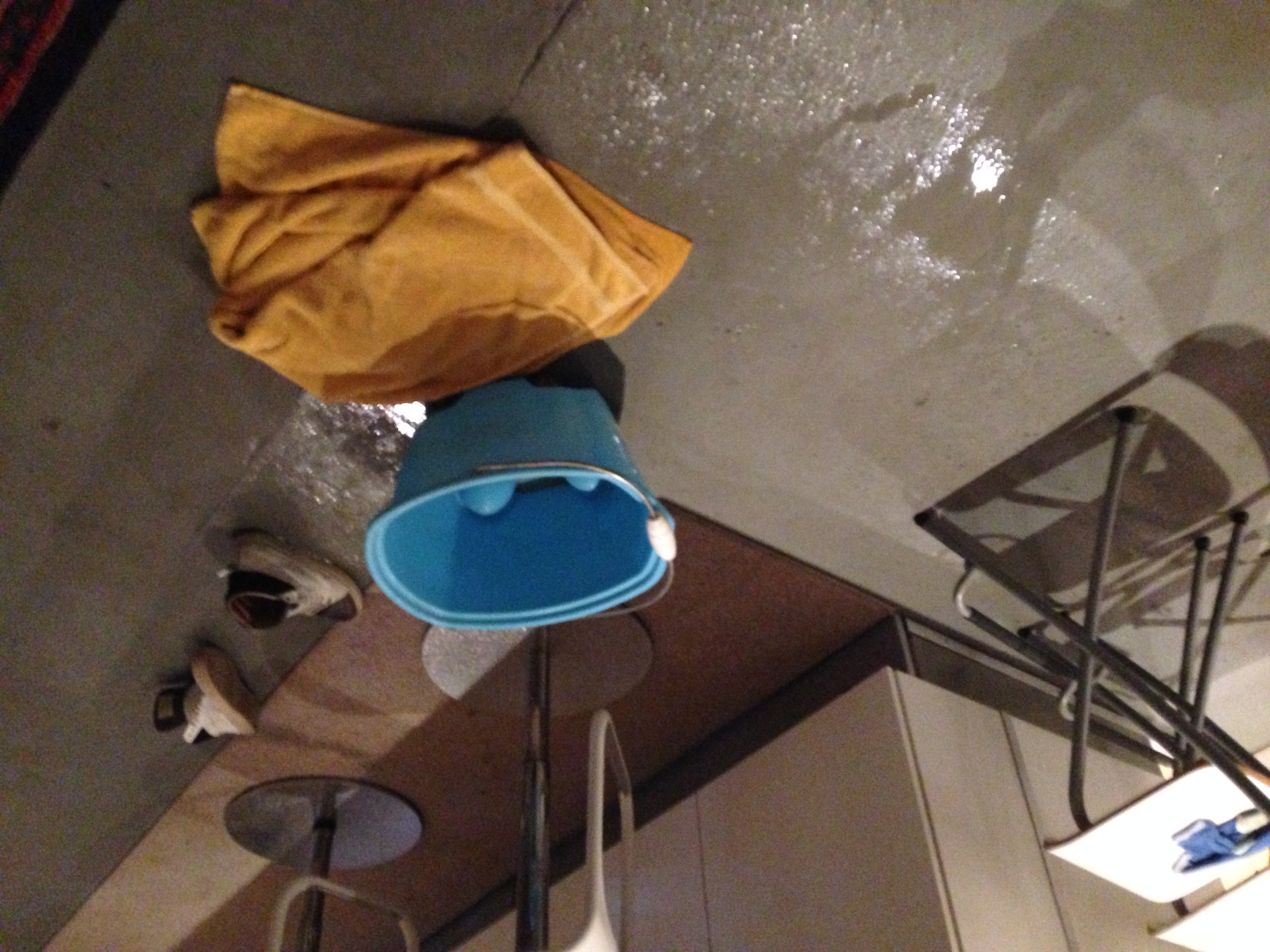 | P-08 | Living area concrete floor with blue bucket catching water; orange towel; wet floor sheen visible | View | WT-116_2015-05-31_Photo_08_IMG_3555.jpeg | IMG_3555.JPG | 2015-05-31 18:00:10 |