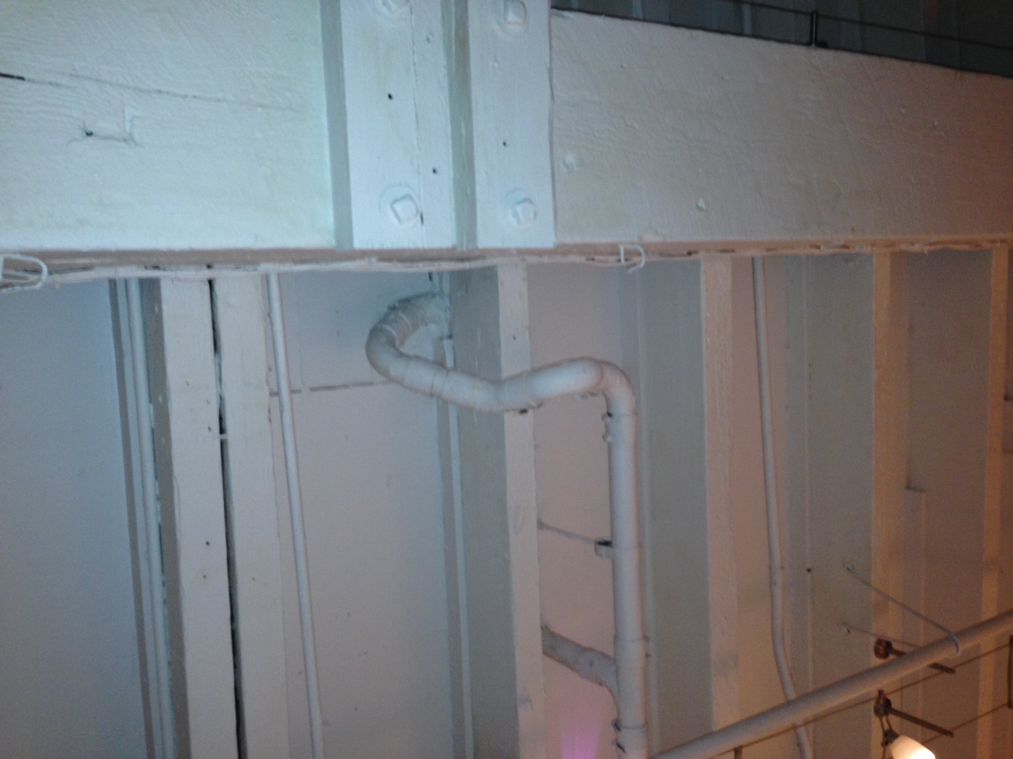 | P-09 | Ceiling infrastructure — exposed beams, PVC drain pipes, building structure showing water pathways | View | WT-116_2015-05-31_Photo_09_IMG_3557.jpeg | IMG_3557.JPG | 2015-05-31 18:00:26 |