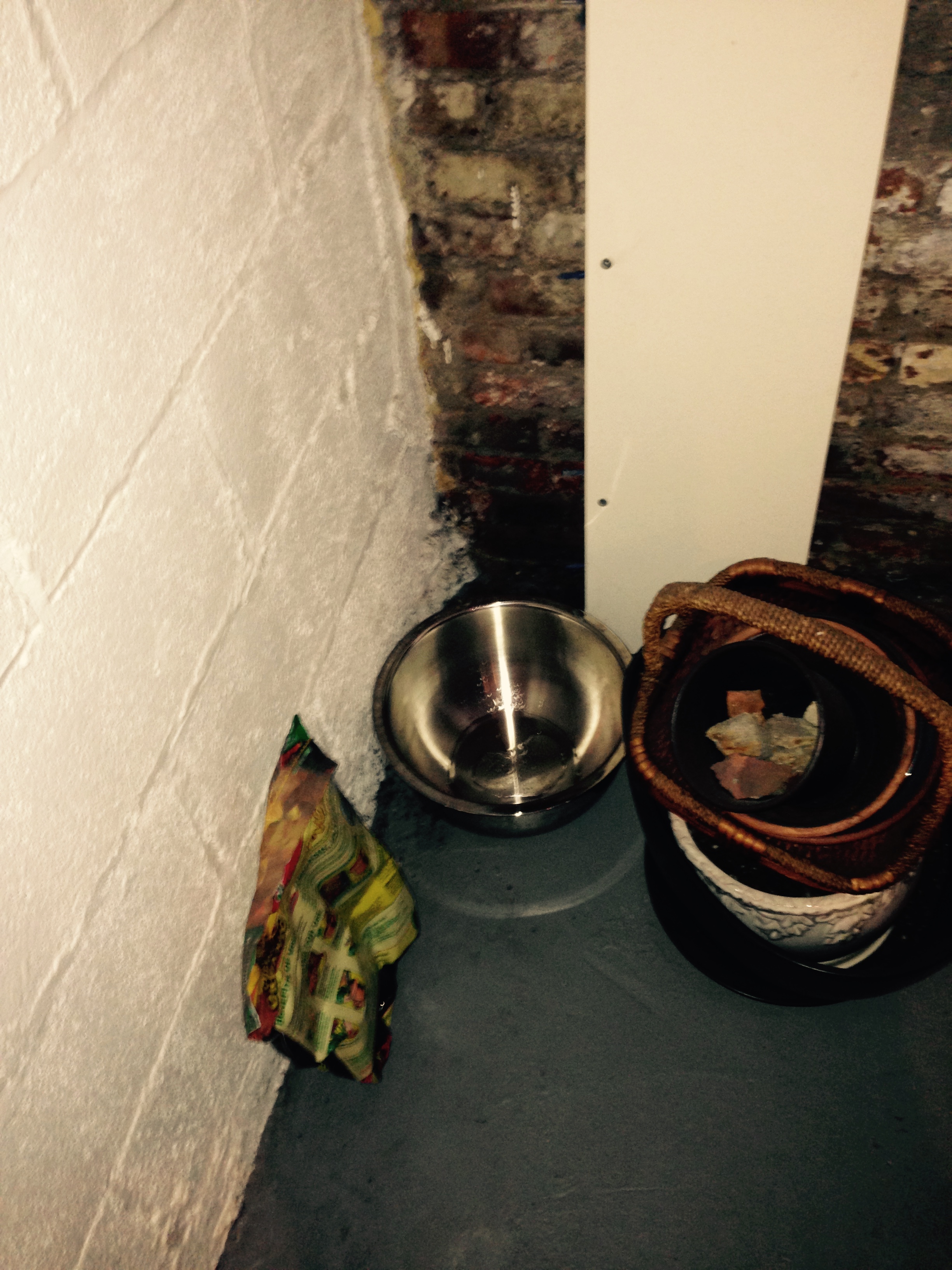 | P-15 | Corner with stainless steel bowl catching water; white textured wall meeting exposed brick; wet floor around bowl | View | WT-116_2015-11-16_Photo_05_IMG_4025.jpeg | IMG_4025.JPG | 2015-11-16 12:56:23 |