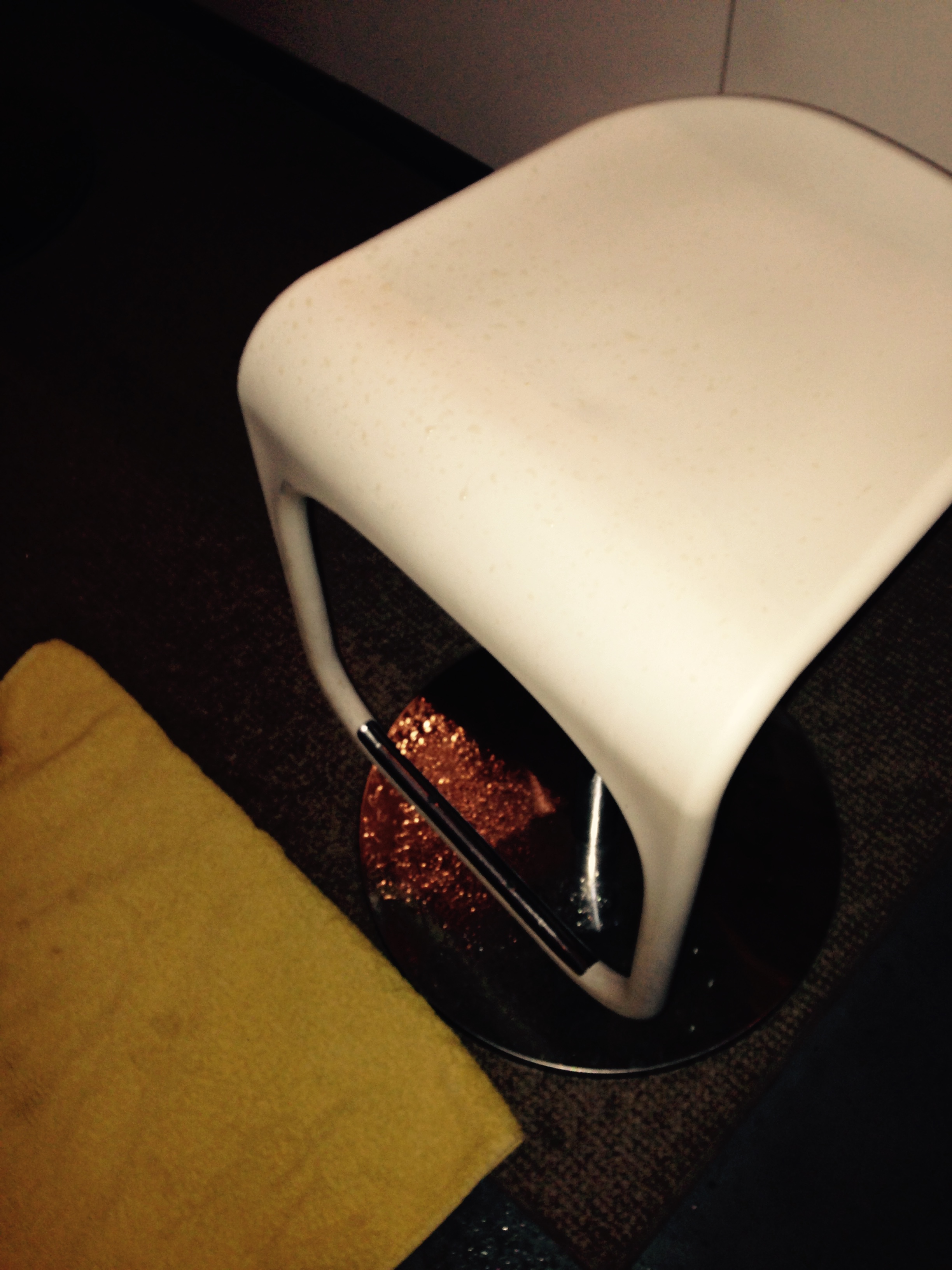 | P-17 | White modern chair with water staining/damage; chrome base with water pooling; yellow towel on floor | View | WT-116_2015-11-16_Photo_07_IMG_4027.jpeg | IMG_4027.JPG | 2015-11-16 12:57:05 |